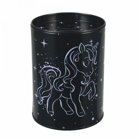 Pojemna skarbonka metalowa okrągła z lakierowanego metalu z otwieranym wieczkiem, która także sprawdzi się jako pojemnik na niezbędne przybory na twoim biurku. Skarbonka STARPAK to idealny pomysł na prezent, który uczy oszczędności i sprawia, że pieniądze są bezpieczne. Skarbonka z ulubionym Jednorożcem