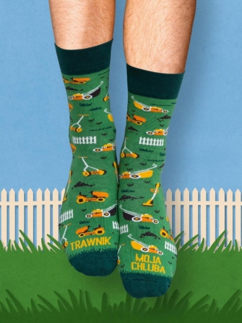Czy są tutaj miłośnicy ostrego cięcia i specjaliści ds. murawy? Śmieszne skarpetki TRAWNIK MOJA CHLUBA zostały stworzone z myślą o wszystkich, którzy mają słabość do trawy. Te bawełniane skarpety w rozkosznie zielonym kolorze idealnie sprawdzą się jako pomysł na prezent urodzinowy dla taty, brata czy kolegi, który jest zapalonym kosiarzem. Nie od dziś wiadomo, jak wielką wartość w gospodarstwie domowym stanowi człowiek prawy do koszenia trawy!