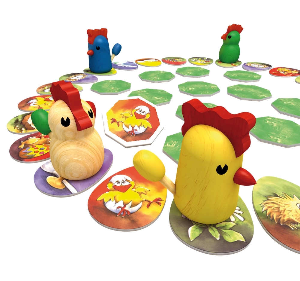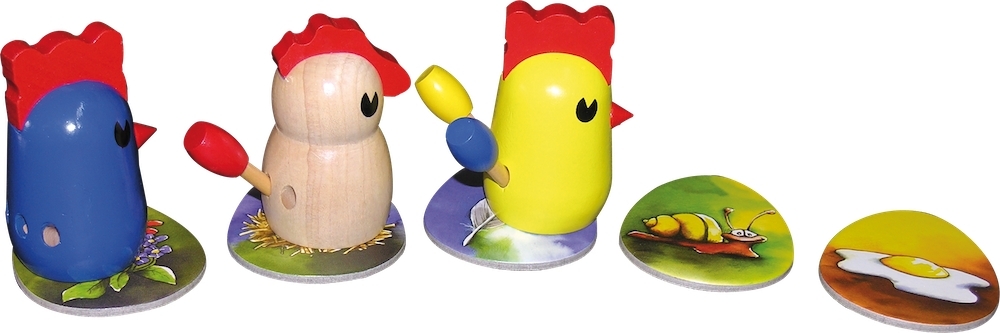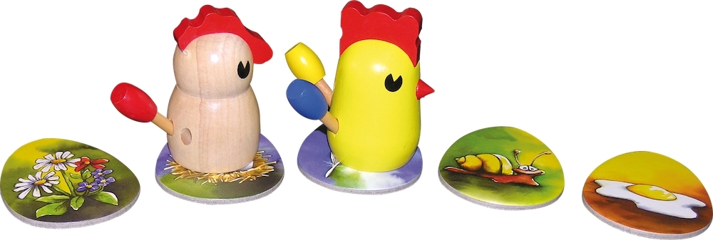 - Najmłodszy gracz odwraca jeden z kafelków wybiegu, pokazuje pozostałym i porównuje go z kafelkiem jajka znajdującym się przed jego kurą. Jeśli obrazki są identyczne, gracz przesuwa kurę do przodu, kafelek wybiegu odkłada zakryty na miejsce i powtarza czynność. Jeśli obrazki różnią się od siebie, tura gracza kończy się i swoją akcję podejmuje kolejna osoba.