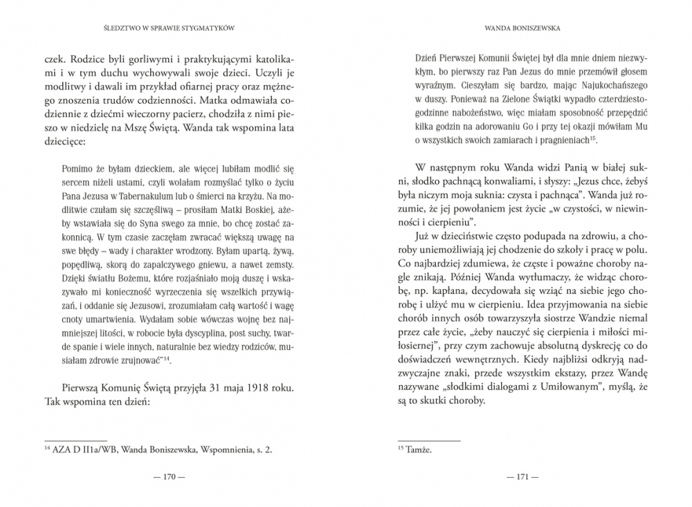 Kościół oficjalnie rozpoznał stygmaty tylko w dwóch przypadkach: u św. Franciszka z Asyżu i św. Katarzyny ze Sieny, co świadczy o tym, że zjawisko to jest niezwykle trudne do oceny. Wszak chodzi o stwierdzenie, że święty został rzeczywiście ukrzyżowany razem z Chrystusem. Wówczas dar stygmatów to wyraz szczególnej relacji z Bogiem. Jak więc czytać przytoczone przez autora niezwykłe historie wybranych stygmatyków – błogosławionych i świętych, a także osób wobec których toczą się procesy kanonizacyjne? Pamiętając o tym, że to nie stygmaty przesądzają o ich świętości, ale heroiczność cnót, warto badać ich życiorysy całościowo, szukając ich wyjątkowej relacji z Bogiem. Oto klucz do prowadzenia tego śledztwa, by choć trochę zbliżyć się do prawdy i nie popaść w pułapkę taniej sensacji.