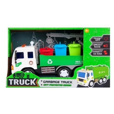 Zalety: rozwijanie wyobraźni dziecka, nakuka segregacji śmieci, nauka dbania o środowisko, efetky świetlne i dźwiękowe. Śmieciarka MEGA CREATIVE to doskonały atrybut podczas próby nauczenia swoich Pociech zasad segregacji odpadów oraz dbania o środowisko. W trakcie zabawy ulubionym samochodem, dziecko posiądzie niezbędną dla naszej Planety wiedzę! Śmieciarka posiada ruchome części - podnoszony i obracany kontener na śmieci. Zabawka wykonana z plastiku.