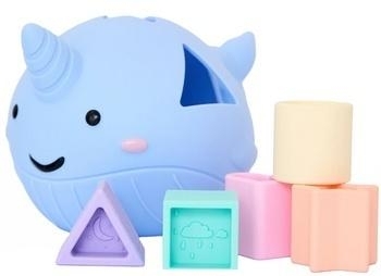 Klasyczny sorter edukacyjny w nowej, magicznej odsłonie od Jellystone! Morski Sorter Kształtów to urocza zabawka w kształcie narwala, stworzona dla dzieci od 6. miesiąca życia, która zachęca do poznawania kształtów, kolorów oraz rozwijania motoryki małej. Dzięki przyjaznemu kształtowi i pięciu kolorowym klockom dzieci uczą się poprzez zabawę. Produkt wykonany jest z bezpiecznego silikonu, łatwego w czyszczeniu - można myć w ciepłej wodzie, zmywarce czy sterylizatorze parowym.