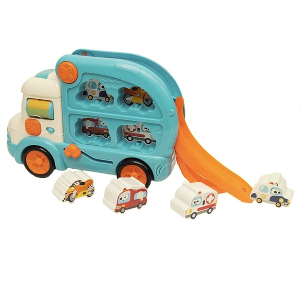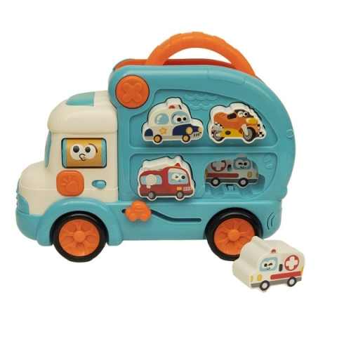 - Łączy funkcję sortera, auto-lawety i zjeżdżalni - zabawa 3w1.