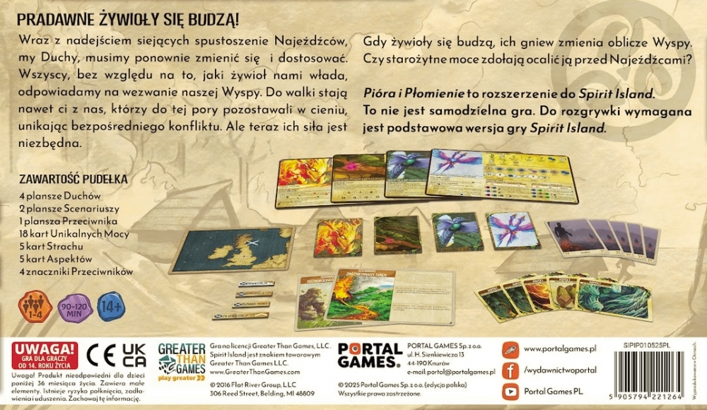 Wszyscy, bez względu na to, jaki żywioł nami włada, odpowiadamy na wezwanie naszej Wyspy. Ruszają nawet ci, którzy do tej pory pozostawali w cieniu. Teraz jednak ich siła jest niezbędna. Przybywają Pióra i Płomienie, nowe rozszerzenie gry Spirit Island!