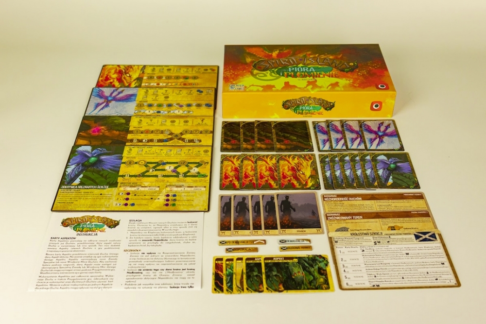 - Karty Aspektów - Karty Aspektów pozwalają na odkrycie nowych możliwości znanych już Duchów, przedstawiając dany aspekt natury Ducha w nowy sposób. Ten mini dodatek zawiera Aspekty czterech Duchów z gry podstawowej o najniższym poziomie złożoności.