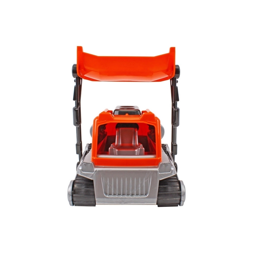 - Terenowość i moc buldożera zapewniają gąsienice. Zabawka nie będzie ślizgać się po powierzchni, ponieważ gąsienice mają głębokie ryflowanie i są wykonane z miękkiego tworzywa sztucznego.