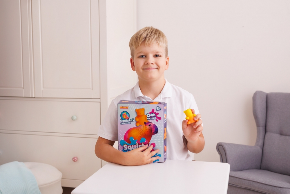 Prawdziwa gratka dla miłośników zwierzątek – mięciutkie squishy w kształcie kapibary do zabawy i ugniatania, które stworzysz samodzielnie z elementów zawartych w zestawie!