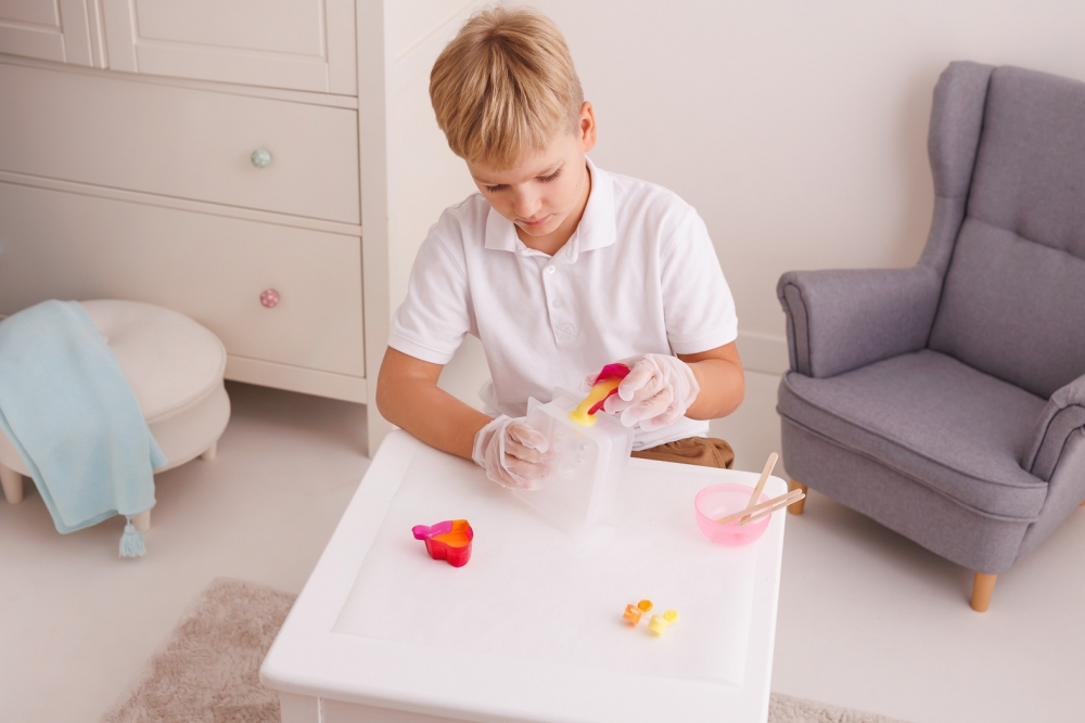 Aby stworzyć własne, „gumowe” zwierzątko, zmieszaj ze sobą klejące masy, rozlej je do kubeczków, dodaj barwniki, a następnie zalej barwnymi mieszankami, w dowolnej kolejności, przygotowaną wcześniej foremkę. Aby mieć pewność, że zwierzaczek squishy dobrze wysechł, pozostaw go w foremce na dłużej, najlepiej na całą dobę i dopiero po tym czasie wyjmij go z foremki.
