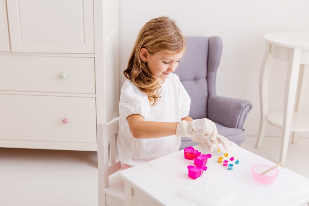 - aby uniknąć zabrudzenia barwnikami, pamiętaj, aby przed przystąpieniem do tworzenia zabezpieczyć ubranie oraz przestrzeń wokół siebie;