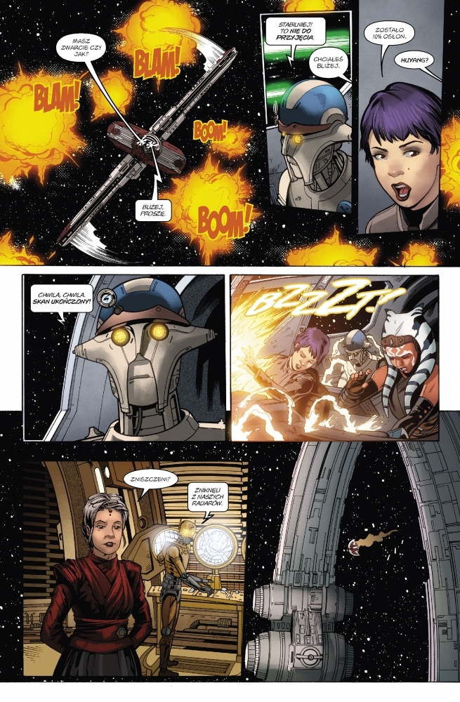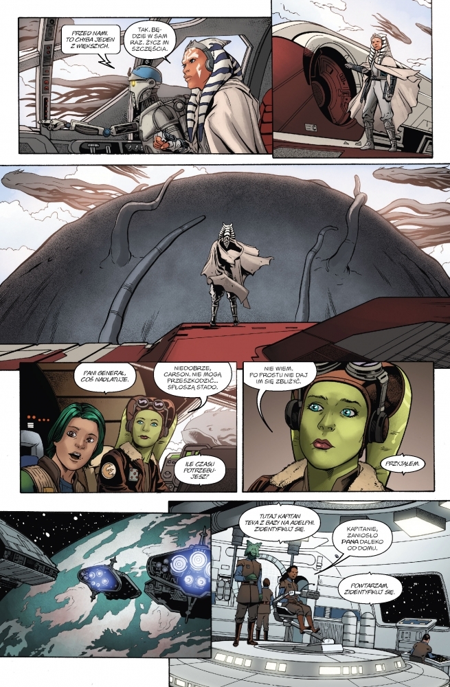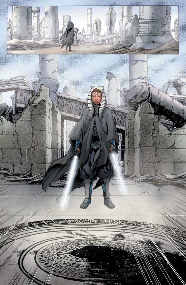 Ekscytująca i pełna zaskakujących zwrotów akcji adaptacja komiksowa przebojowego serialu Disney+. Po upadku Imperium Ahsoka Tano przemierza galaktykę w poszukiwaniu wielkiego admirała Thrawna. A gdy cenny jeniec wymyka się Nowej Republice, Ahsoka łączy siły z dawną znajomą, żeby odnaleźć uciekiniera. Morgan Elsbeth powraca z tajemniczymi użytkownikami Mocy: Baylanem Skollem i jego uczennicą Shin Hati.