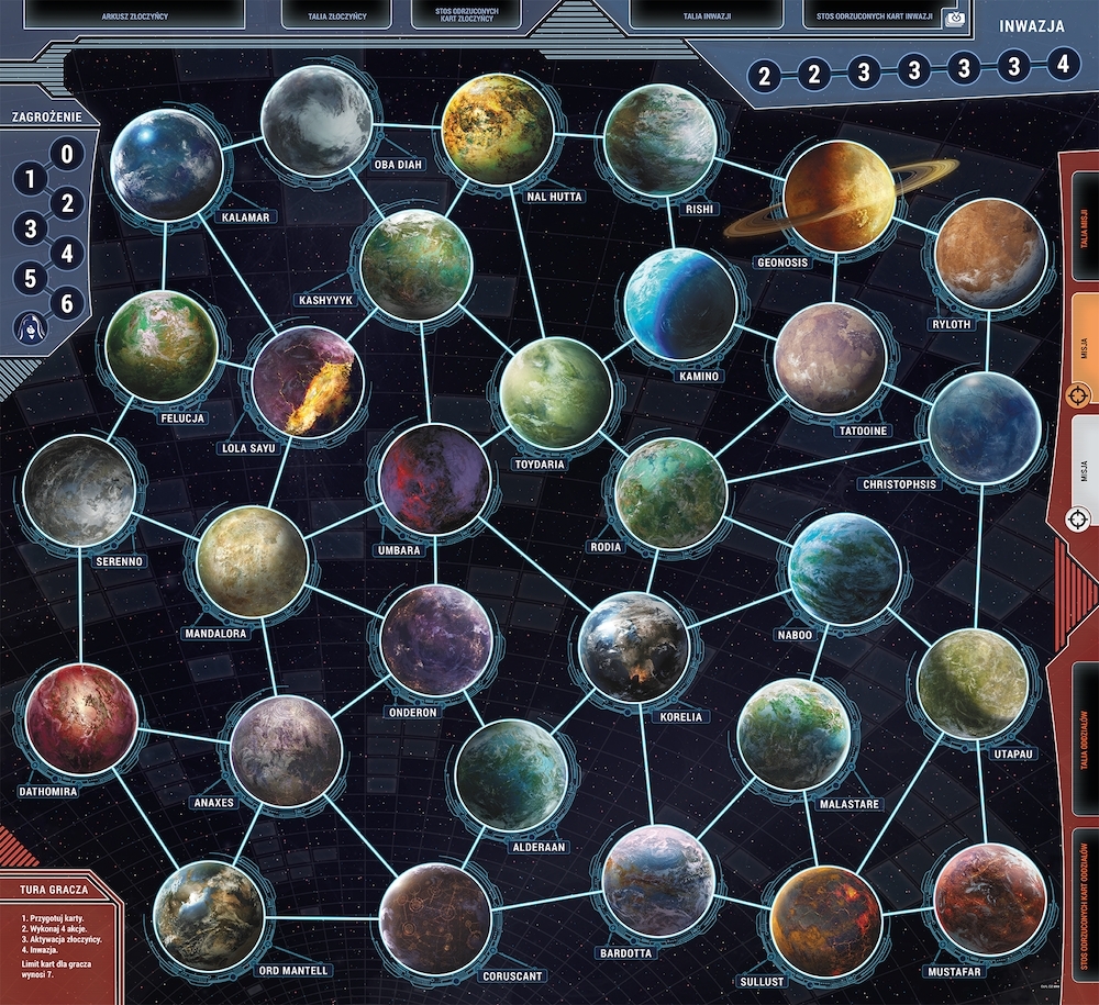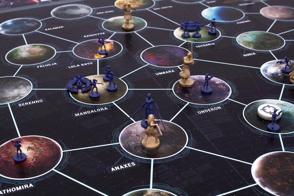 - W każdej turze gracz może wykonać do 4 akcji, wśród których jest przemieszczanie się między planetami, walka z napotkanymi wrogami i wykonywanie rozsianych po kosmosie misji. Zebrane na kartach oddziały oraz celne rzuty kością pozwolą Wam na sprawne realizowanie zadań.