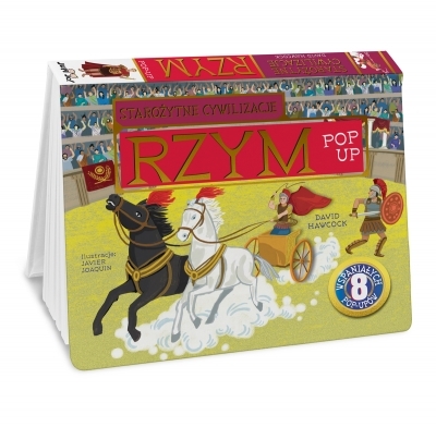 Osiem wspaniałych pop-upów pozwala poznawać fascynujący Rzym w 3D. Młodzi czytelnicy zobaczą gladiatorów i dzikie zwierzęta, obejrzą wyścigi rydwanów, będą świadkami walk centurionów. Poznają rzymskich bogów, odkryją codzienne życie starożytnych Rzymian i potęgę ich armii. To nie wszystko! Zobaczą także najwspanialsze budowle Rzymu: wille bogatych patrycjuszy, okazałe forum, Circus Maximus i Koloseum.