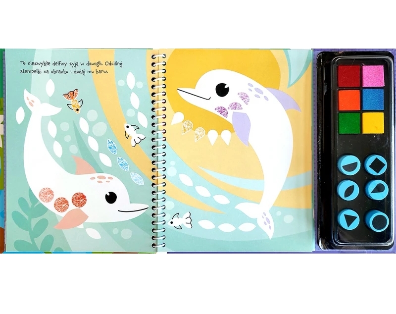 Aktywizująca książeczka, w której za pomocą kolorowych tuszów i pieczątek można tworzyć własne obrazki. Stemplami dzieci będą ozdabiać zwierzęta i rośliny, wykonywać fantazyjne desenie i uzupełniać ilustracje według wzorów.