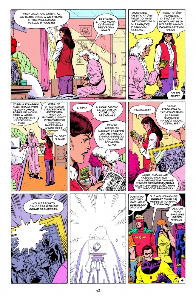 Monumentalne dzieło brytyjskiego scenarzysty Alana Moore’a z rysunkami Dave’a Gibbonsa. W 2009 roku zekranizowane przez Zacka Snydera. Powieść graficzna, która zburzyła stereotyp amerykańskich komiksów o superbohaterach. Skonstruowana z zegarmistrzowską precyzją historia dwóch pokoleń zamaskowanych bohaterów, rozgrywająca się w alternatywnej Ameryce od końca II wojny światowej po połowę lat 80. XX wieku.