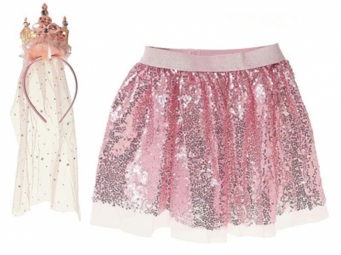zestaw karnawałowy księżniczka - opaska z koroną i welonem, spódniczka na gumce z regulowaną szerokością i tiulową podszewką dł. 28cm, 36x25x4cm