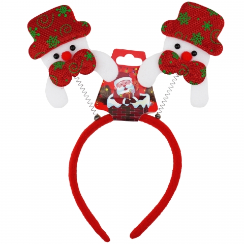 Świąteczna opaska na głowę z bałwankami na sprężynach