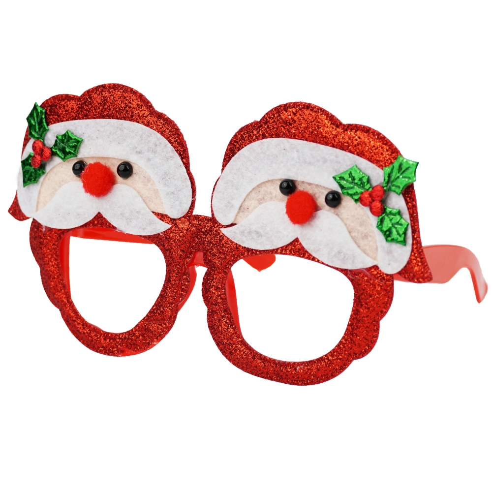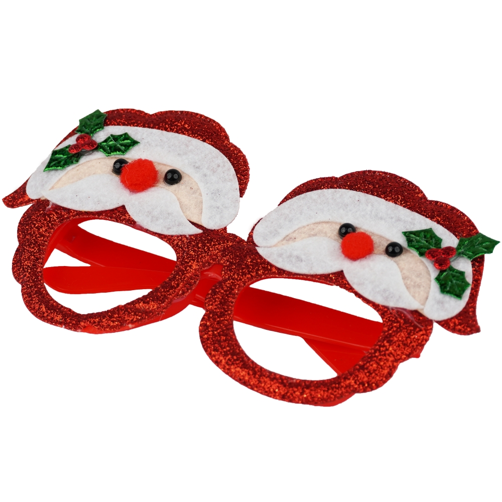 Te zabawne, czerwono-brokatowe okulary z uroczymi Mikołajami po obu stronach idealnie sprawdzą się jako element stroju na świątecznej imprezie!