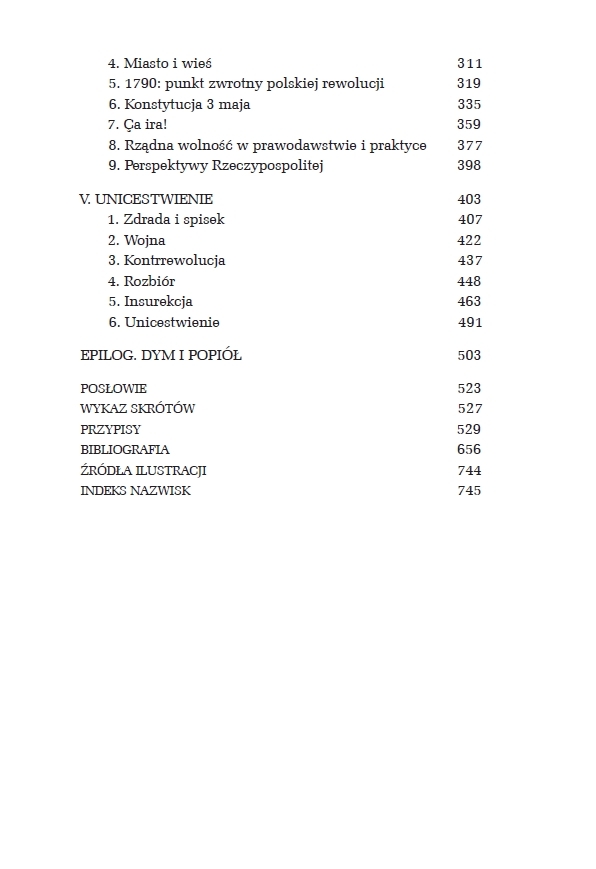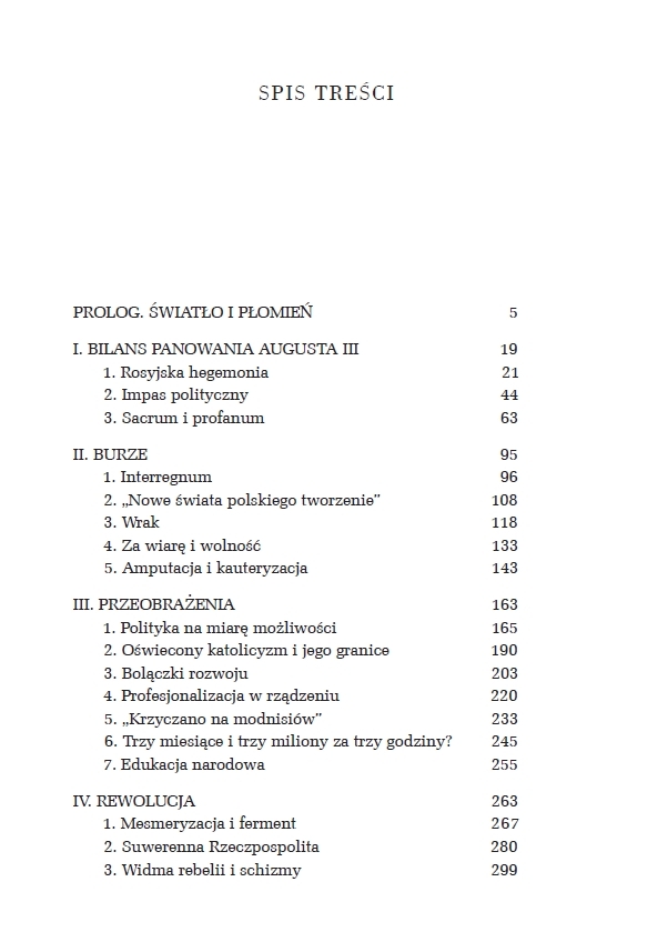 Na historycznej szachownicy autor rozstawia zarówno najważniejsze, jak i poboczne figury: tragiczną postać króla Stanisława Augusta Poniatowskiego, wielkich magnatów, wizjonerskich reformatorów i zwykłych szlachciców. Pamięta jednak o tym, że cała ta partia rozgrywała się w złowrogim cieniu agresywnych monarchii ościennych i pod czujnym okiem ich władców, z Katarzyną II na czele.