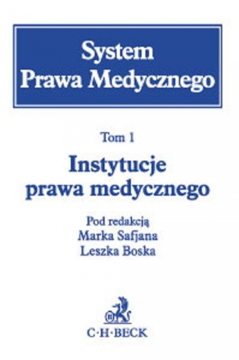 Tom 1. Instytucje Prawa Medycznego poświęcony jest instytucjom prawa medycznego (elementom stosunku prawa medycznego). We wszystkich dziedzinach prawa medycznego wyzwania stawiane przez rozwój medycyny wymagają swoistego podejścia i analizy, w relacji pacjent–personel medyczny przede wszystkim z punktu widzenia zakresu autonomii pacjenta i granic dopuszczalnego ryzyka, w sferze organizacji służby zdrowia – z punktu widzenia dostępności, finansowania i dystrybucji nowoczesnych technologii, zważywszy przede wszystkim na wysokie koszty ich zastosowania, wreszcie w obszarze prawa farmaceutycznego – z punktu widzenia zasad przeprowadzania badań klinicznych oraz finansowania i dostępności leków najnowszych generacji.