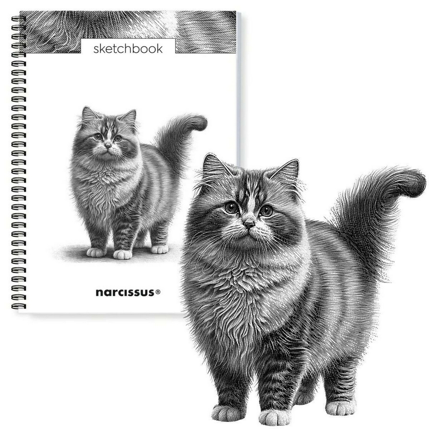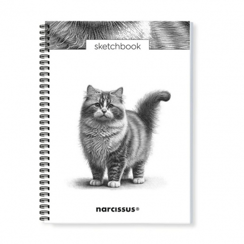 NARCISSUS szkicownik artystyczny na spirali A4 Kot Ragamuffin, 50 kartek z perforacją