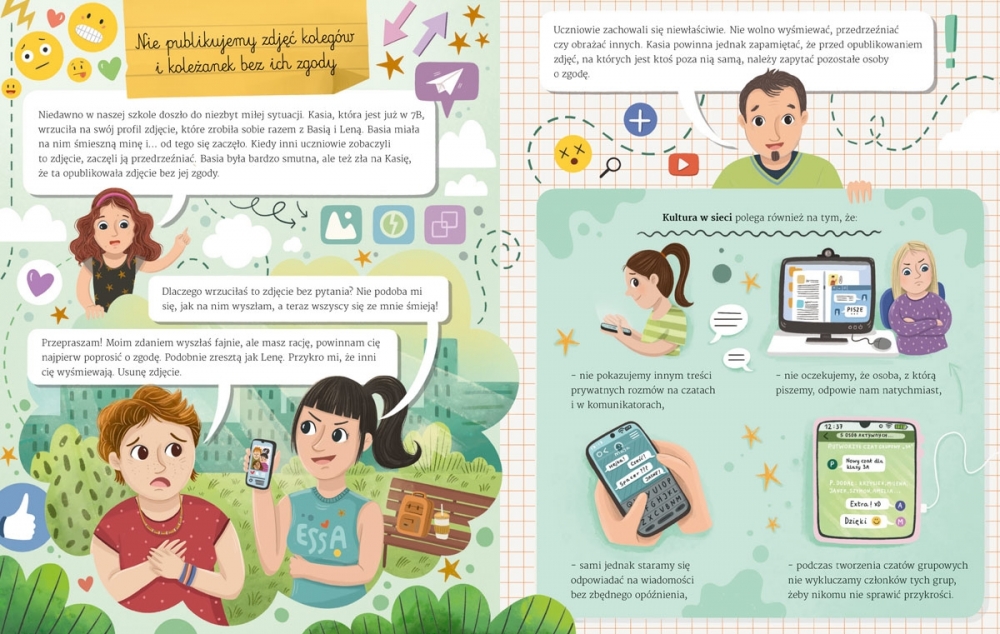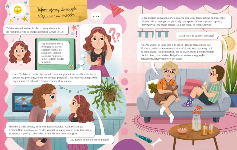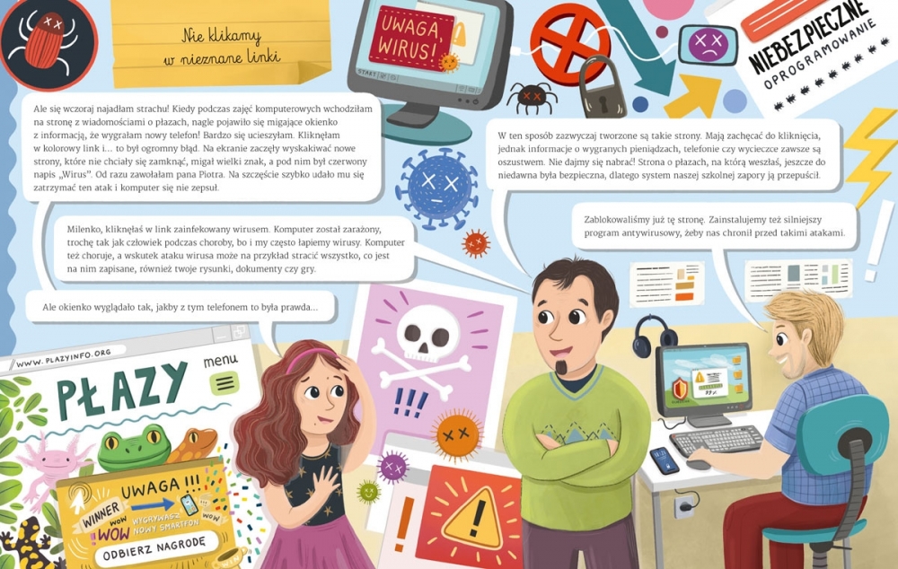 Internet to skarbnica wiedzy. Niestety czasami spotykamy się tam zachowaniami, na które dobrze jest zareagować w odpowiedni sposób. Wierzę, że ta książka pomoże zadbać o bezpieczeństwo dzieci i zminimalizować ryzyko związane z korzystaniem z internetu. - Ewa Borowska, nauczycielka edukacji wczesnoszkolnej