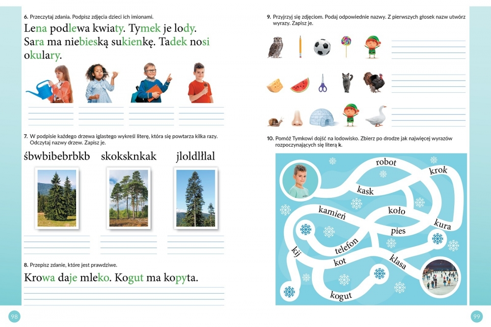 Dzięki zróżnicowanym poleceniom, karty ćwiczeń rozwijają umiejętność pisania, czytania ze zrozumieniem, a także koordynację wzrokowo-słuchowo-ruchową.