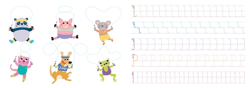 W tej edukacyjnej książeczce znaleźć można zarówno tradycyjną naukę pisania po śladzie wzorów literopodobnych, jak i atrakcyjne zabawy motoryczne.