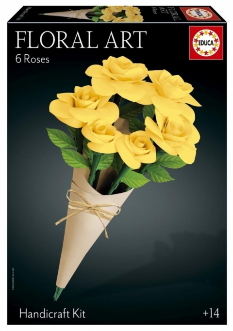 Pudełko zawiera wszystkie elementy niezbędne do stworzenia bukietu żółtych róż. Ozdobne kwiaty można obracać, podnosić i opuszczać wzdłuż łodygi.