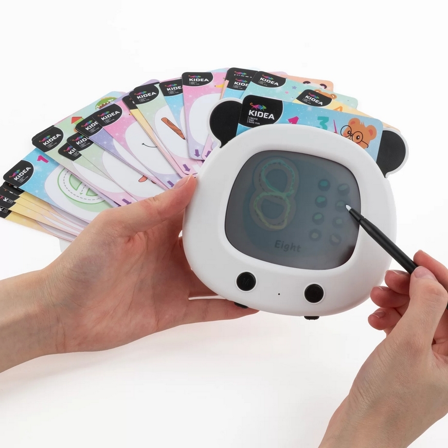 Mówiący interaktywny tablet z rysikiem – nauka języka i zabawa w jednym. Zestaw zawiera 78 haseł ze słówkami z zakresu kolorów, zwierząt i przedmiotów oraz 2 bajki. Wszystkie karty są dwustronne z kolorowymi ilustracjami ułatwiającymi zgadywanie znaczeń. Tablet posiada ekran do rysowania z rysikiem, pozwalając na swobodne tworzenie i ćwiczenie pisania. Idealny do nauki angielskiego i rozwijania kreatywności u najmłodszych.