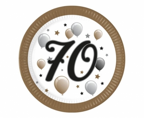 Talerzyki papierowe 70 urodziny FSC 23cm 8szt