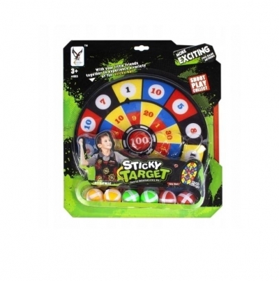 Czas na rywalizację na najwyższym poziomie Kto zdobędzie więcej punkt oacute w Celujemy w sam środek tarczy W zestawie znajduje się tarcza, oraz 6 piłek. Tarcza została pokryta materiałem, piłki posiadają rzepy, kt oacute re z łatwością przyczepiają się do tarczy. Tarczę należy powiesić na ścianie lub innej płaskiej powierzchni i z odległości kilku metr oacute w wykonać rzut, celując w jak najlepiej punktowane pola. Rzucać można na przemian z drugą osobą, lub serią rzut oacute w w jednej kolejce. Zabawka wykonana z plastiku oraz materiału. Przeznaczona dla dzieci w wieku 3 .