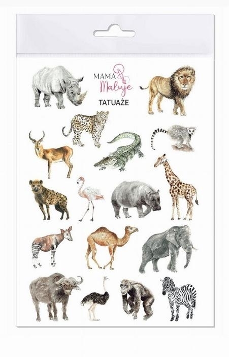 Tatuaże zmywalne Zwierzęta Afryki zostały wykonane na podstawie ręcznie malowanych ilustracji akwarelowych.