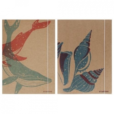 Teczka z gumką wykonana z ekologicznej jasno brązowej tektury typu Kraft podlegającej 100% recyklingowi, teczka o gramaturze 300g, posiada gumke w białym kolorze. Teczka w formacie A4 występuje w dwóch wzorach