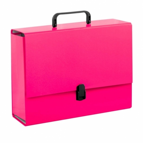 Wykonana z tektury 1,7mm, nitowane boki z okleinowanymi krawędziami. Okleina w jednolitym kolorze uszlachetniona błyszczącą folią polipropylenową, Wymiary w cm: 32x24,5x10