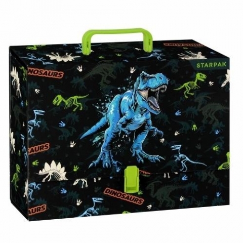 Teczka z rączką z kolekcji STARPAK z serii Dino . Sztywna teczka wykonana z grubego, lakierowanego kartonu. Zamykana na plastikowy klips. Teczkę wyposażono w solidną rączkę. Teczka o szerokości grzbietu 9,5 cm. Idealnie sprawdzi się na zajęciach pozaszkolnych czy do przechowywania prac dziecka. Zapoznaj się również z innymi produktami z tej serii! Wymiary/waga: wymiary produktu (szer. x wys. x gł.)[cm]: 33x25x10, waga produktu [kg]: 0,50 kg. Produkt przeznaczony dla dzieci w wieku: 3+.