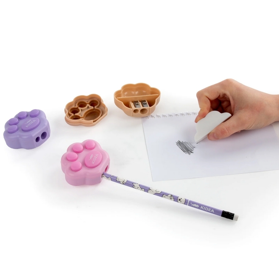 Temperówka podwójna z gumką Kidea - Kocia Łapka, 1 szt