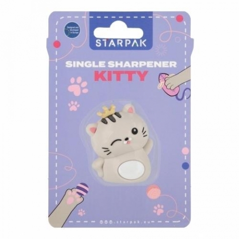 Temperówka Kotek STARPAK, gumowa pojedyncza łatwa możliwość temperowania oraz opróżniania ze strużyn. Opis: żeby móc korzystać z ołówków, czy kredek niezbędna jest oczywiście temperówka. Ostrza powinny być mocne i trwałe, Żeby nie połamać grafitu i uzyskać odpowiednio zaostrzoną końcówkę. Różne modele temperówek (metalowe i plastikowe, pojedyncze i podwójne, z pojemnikiem na strużyny i bez) Takie są właśnie temperówki Starpak. Zapoznaj się również z innymi produktami Starpak! Produkt pakowany na blistrze