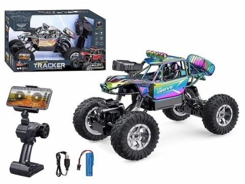 auto terenowe 1:14 na radio, metalowe, neonowe, z kamerą i WiFi; 40x19x25,5cm, W/B