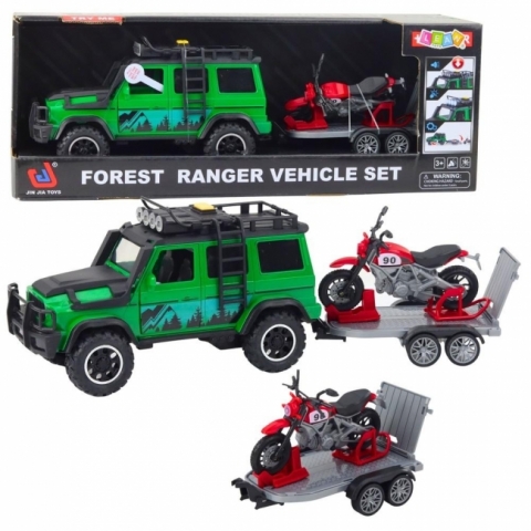 Terenówka z lawetą i motyocyklem światło i dźwięk