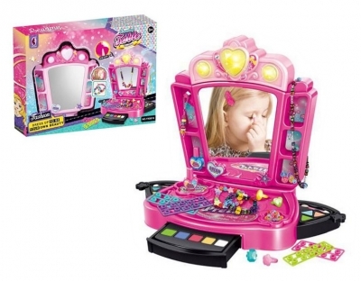 baterie AA. Baterie nie są załączone do zabawki. pierścionki, łańcuszek, cienie do powiek, lakiery do paznokci, koraliki do bransoletek