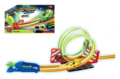 Zapakowany w kartonowe pudełko. Zabawka działa na baterie AG13. Baterie znajdują się w zabawce. Tor świeci w ciemności. Podane wymiary są wymiarami opakowania.