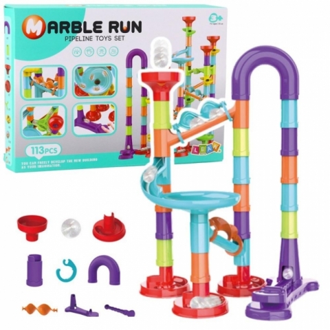 TOR KULKOWY KULODROM ZESTAW 113 EL KULKI WYRZUTNIA Zestaw toru kulkowego MARBLE RUN to ekscytująca propozycja dla dzieci, które uwielbiają kreatywne konstruowanie i eksperymentowanie z ruchem. Ten imponujący kulodrom pozwala na tworzenie własnych, unikalnych tras dla szklanych kulek - dziecko może korzystać z gotowych wzorów pokazanych na opakowaniu lub projektować całkowicie nowe tory, korzystając z różnych zjeżdżalni, zakrętów, kołowrotków i wyrzutni. Zabawka doskonale rozwija zdolności manualne, myślenie przestrzenne oraz umiejętność logicznego planowania. Kolorowy design i różnorodność elementów sprawiają, że każda budowa staje się emocjonującym wyzwaniem i gwarantuje wiele godzin twórczej zabawy. Zestaw zawiera aż 113 elementów, w tym 30 szklanych kulek i 83 komponenty toru. Produkt został wykonany z wysokiej jakości tworzywa pozbawionego ostrych krawędzi, co zapewnia bezpieczne użytkowanie nawet przez najmłodszych konstruktorów. To doskonały wybór zarówno do zabawy indywidualnej, jak i wspólnej z rodzeństwem czy rówieśnikami. SPECYFIKACJA: Liczba elementów: 113 Klocki toru: 83 sztuki Szklane kulki: 30 sztuk Rodzaj montażu: samodzielny Elementy ruchome: spirale, mosty, zjeżdżalnie, wyrzutnie Materiał: tworzywo sztuczne bezpieczne dla dzieci Kolorystyka: wielobarwna Wymiary opakowania: 32 x 23,5 x 8 cm Typ zabawki: konstrukcyjna, edukacyjna ZAWARTOŚĆ ZESTAWU: 30 szklanych kulek 83 różnorodne klocki do budowy toru Kolorowe elementy zjeżdżalni i wyrzutni