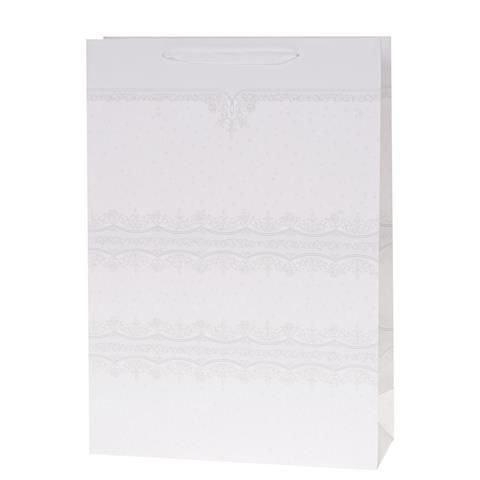Torebka Lux brokat biała średnia 18x23x10cm ROZETTE