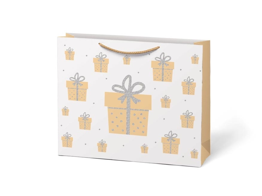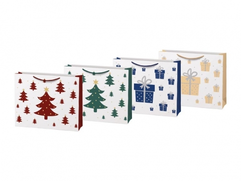 Torebka papierowa z nadrukiem. Torebka ma mocny uchwyt oraz zawieszkę.
