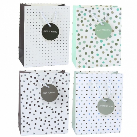 TORBA PREZENTOWA Z KROPKAMI I NAPISEM "JUST FOR YOU"
