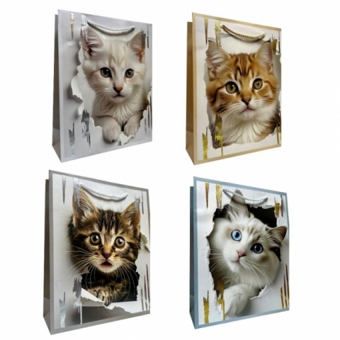 Torebka prezentowa S metalizowana Kotki mix