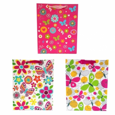 Torebka prezentowa uniwersalna L Kwiaty motyle MIX