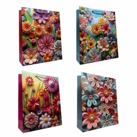 Torebka prezentowa uniwersalna M Kwiaty metal mix