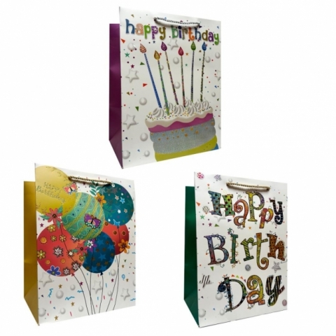 Torebka prezentowa urodzinowa M szerokie dno mix