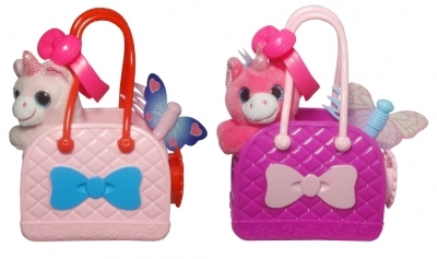 Urocze jednorożce w torebce. Jednorożca można zaczepić na uszkach torebki co sprawia wrażenia jakby zwierzątko po niej zjeżdżało. Jednorożca można również zaczepić na palcu lub na ramię plecaka. Produkt występuje w kilku wersjach kolorystycznych, wybierany losowo. Cena dotyczy jednje sztuki. Produkt przeznaczony dla dzieci od 3 lat.